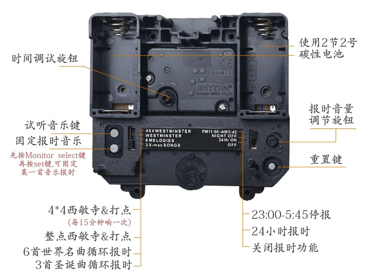 电池音乐钟使用说明