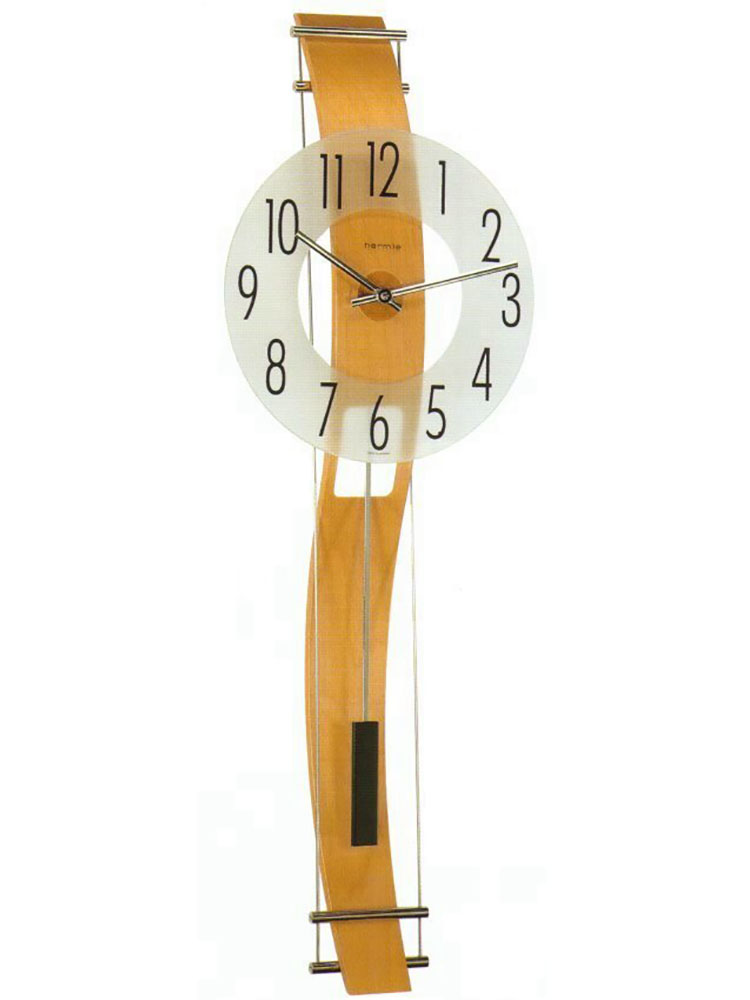 说明:柔和弯曲的木质钟身,磨砂玻璃盘面,给人一种流动的活力感,德国石英机芯。